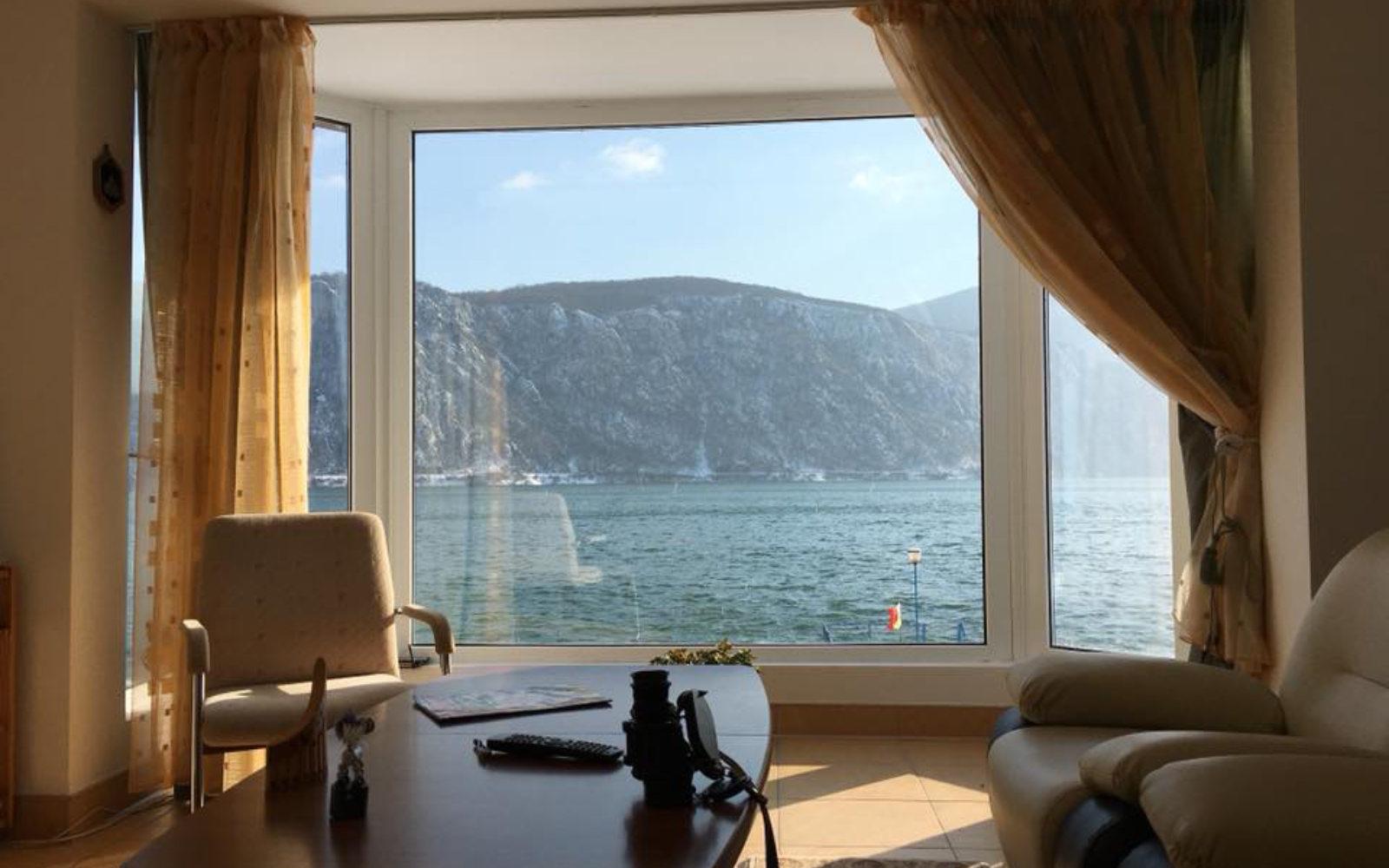 Cameră spațioasă, cu pat king-size, baie privată și vedere superbă la Dunăre – ideală pentru un sejur relaxant în inima naturii.